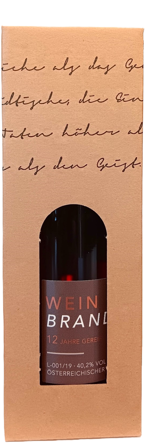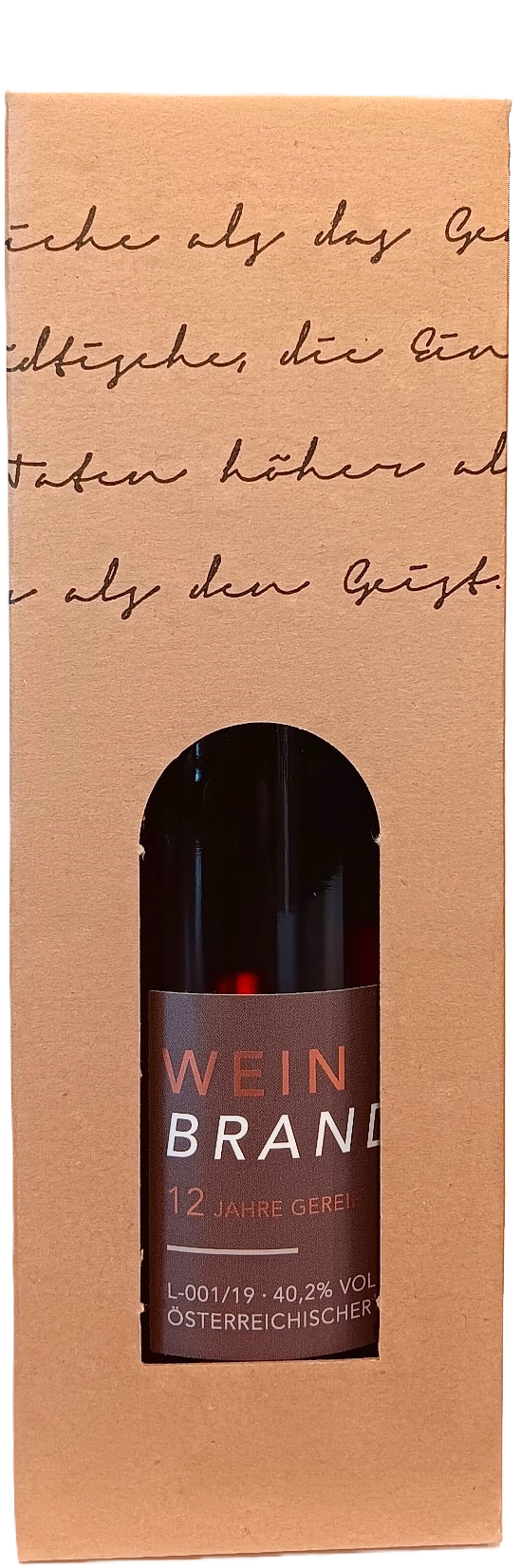 Dieser Weinbrand ist aromatisch ähnlich einen guten Grappa Barrique und ist schön cremig und weich auf der Zunge mit feinen Frucht- und Röstnoten. Er ist 12 Jahre im Barriquefass gelagert!