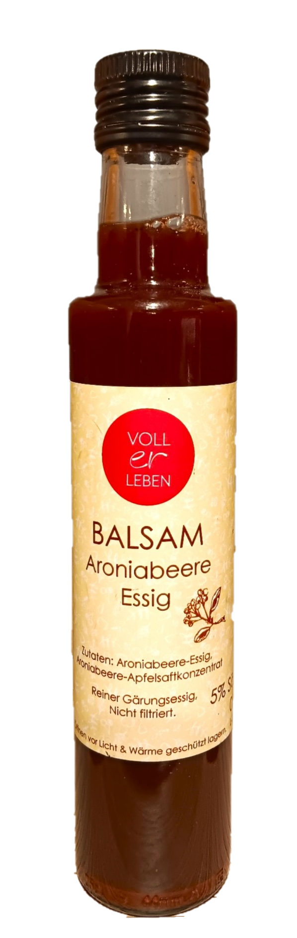 Dieser Aroniabeere Balsamessig aus der lokalen Manufaktur in unserer Nähe ist ohne chemische Zusatzstoffe gemacht und nicht filtriert. Ein reiner Gärungsessig, ein Naturprodukt aus den besten Rohstoffen.