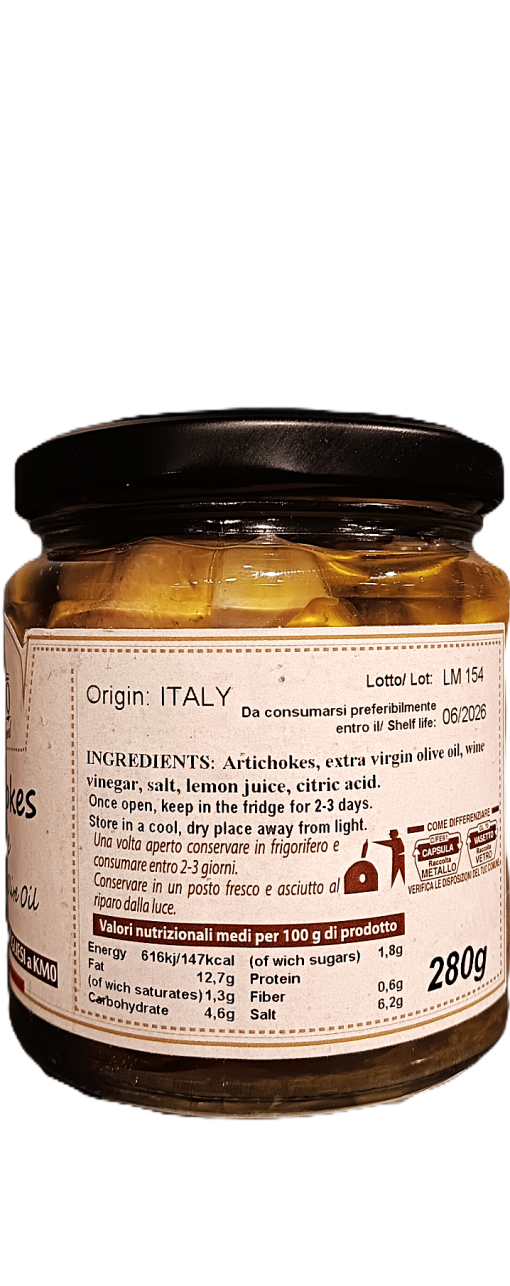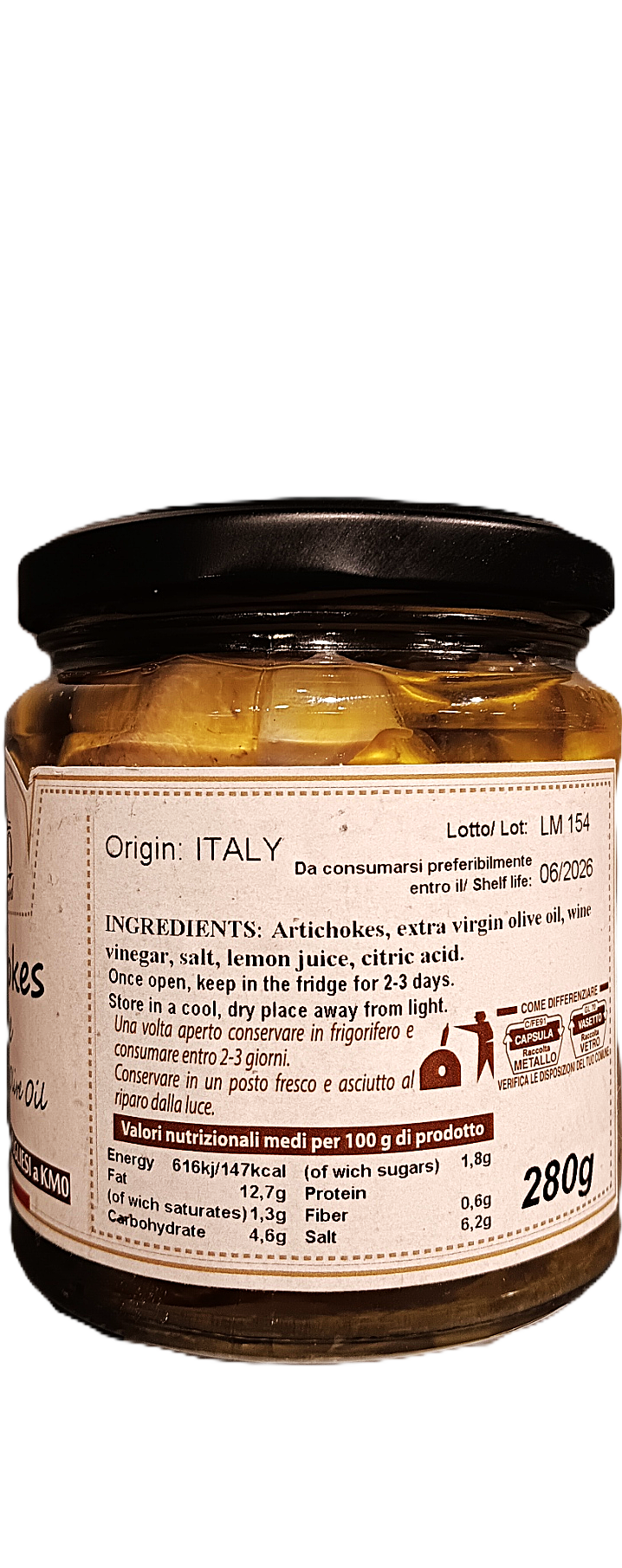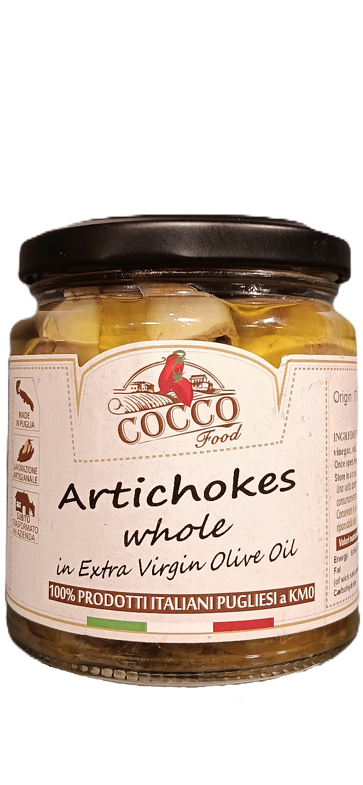 Diese hausgemachten Artischocken werden nach handwerklicher Arbeitsweise frisch verarbeitet, angereichert mit typischen apulischen Gewürzen und dem besten Extra Virgin Olivenöl. Authentisch, lecker und bereit zum Genießen!