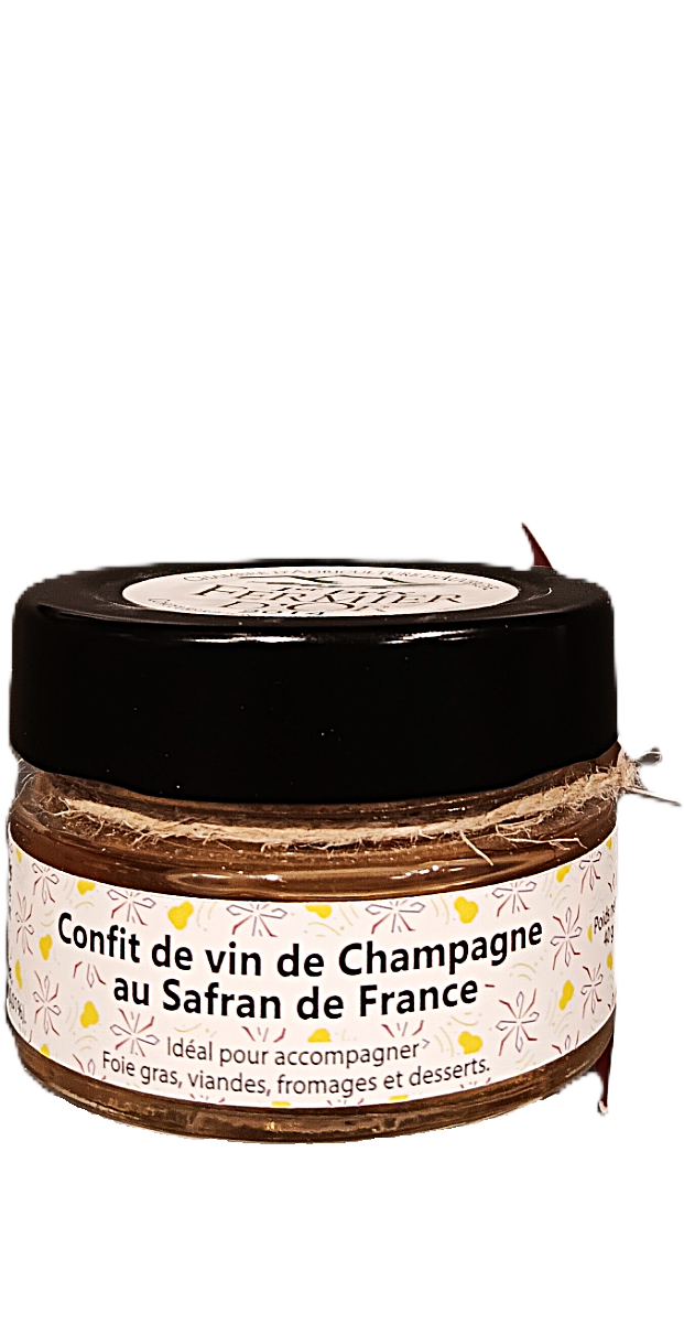 Dieses von leidenschaftlichen Handwerkern mit Sorgfalt zubereitete Safran-Champagner-Confit ist das Ergebnis von traditionellem Know-how und hochwertigen Zutaten. Der verwendete Champagner wird aufgrund seiner Feinheit und seines prickelnden Charakters ausgewählt, während der Safran der Vulkane in der Chaîne des Puys, einem UNESCO-Weltkulturerbe, von Hand geerntet wird, was ihm gleichzeitig einen kraftvollen und delikaten Geschmack verleiht.