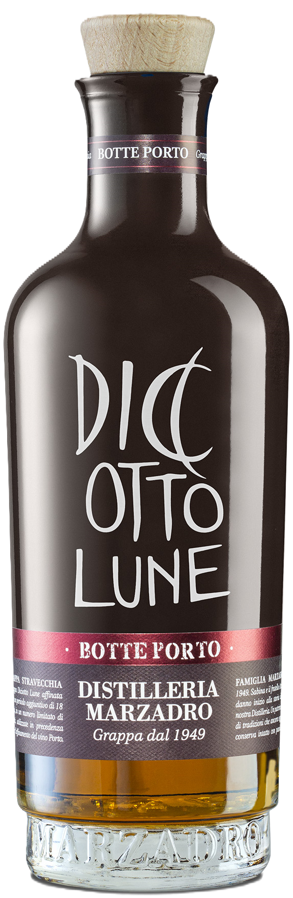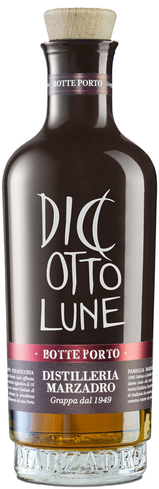 Trestern von einer Mischung aus roten und weißen Rebsorten formen die Basis für diesen Grappa. Er ist 18 ("diciotto") Monate in Holzfässern aus Eiche, Kirsche, Esche und Robinie gelagert. Die zusätzliche Reifung in sorgfältig ausgewählter portugiesischer Holzfässer, die zuvor zur Alterung von Portwein verwendet wurden, ergibt einen bestimmteren Grappa-Holz-Kontrast und fruchtige und süßliche Aromen.