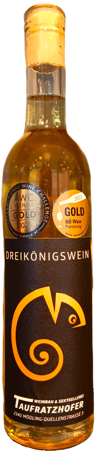 Die Trauben für diesen Beerenauslese wurde am Dreikönigstag, also am 6. Jänner, geerntet, deshalb ist er als „Drekönigswein“ getauft. Der Wein hat sehr schöne exotische Noten und eine nicht zu intensive Süße. Er kann sowohl solo, ohne Ablenkung, als auch zu Torten, Desserts und süßen Hauptspeisen genossen werden – zB. Kaiserschmarrn!