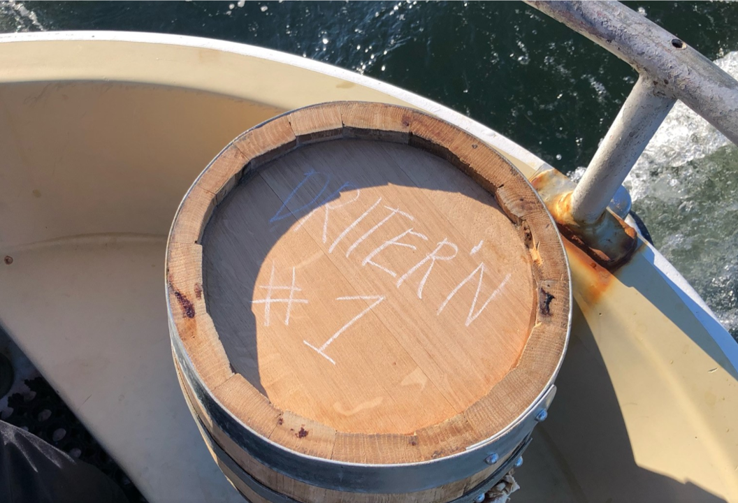 Das erste Fass mit Driter'n Akevitt auf der Segeltour zwei Mal rund um Insel Driteren (auf der Karte)