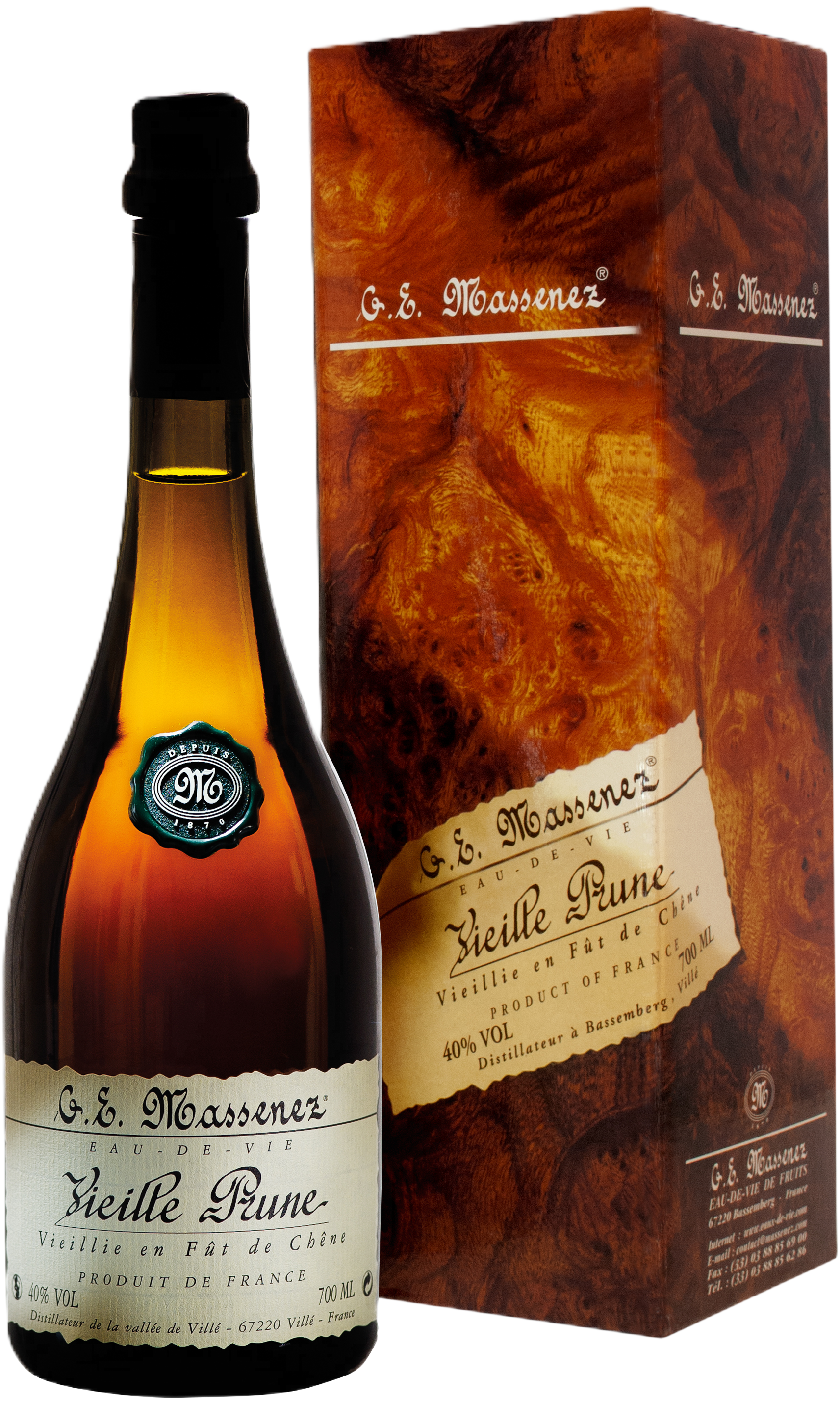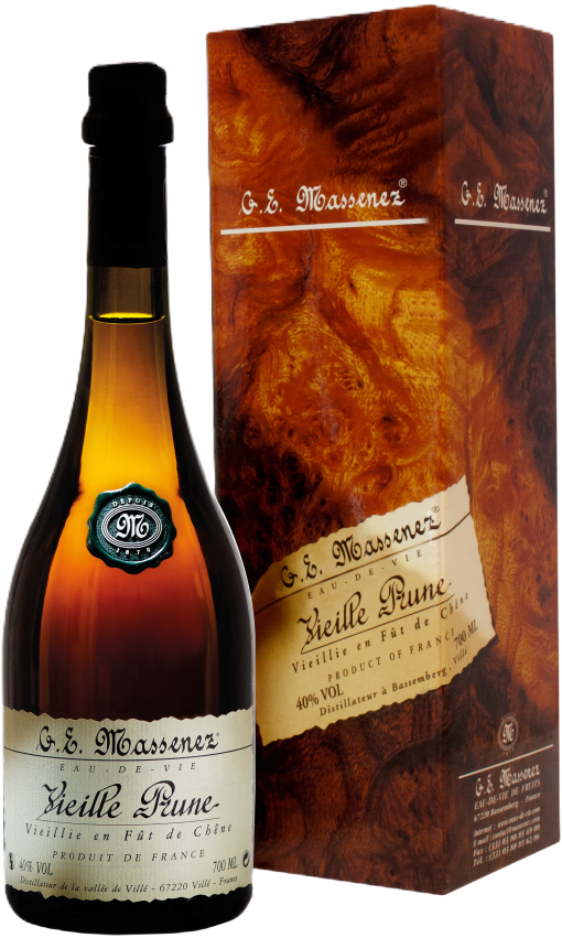 Dieser Eau-de-Vie Edelbrand wird von französische Massenez erzeugt, einer der renommiertesten Edelbrennereien Europas. Die außergewöhnlich respektablen Geschichte des Unternehmens geht zurück bis 1870. Die Alte Zwetsche verkörpert Massenez‘ Expertise in der Herstellung edler Obstbrände. Die perfekte harmonische Verbindung von Visualisierung durch die alte traditionelle Flasche und das Erlebnis in der Nase und auf der Zunge ergibt ein komplettes Genusspaket.