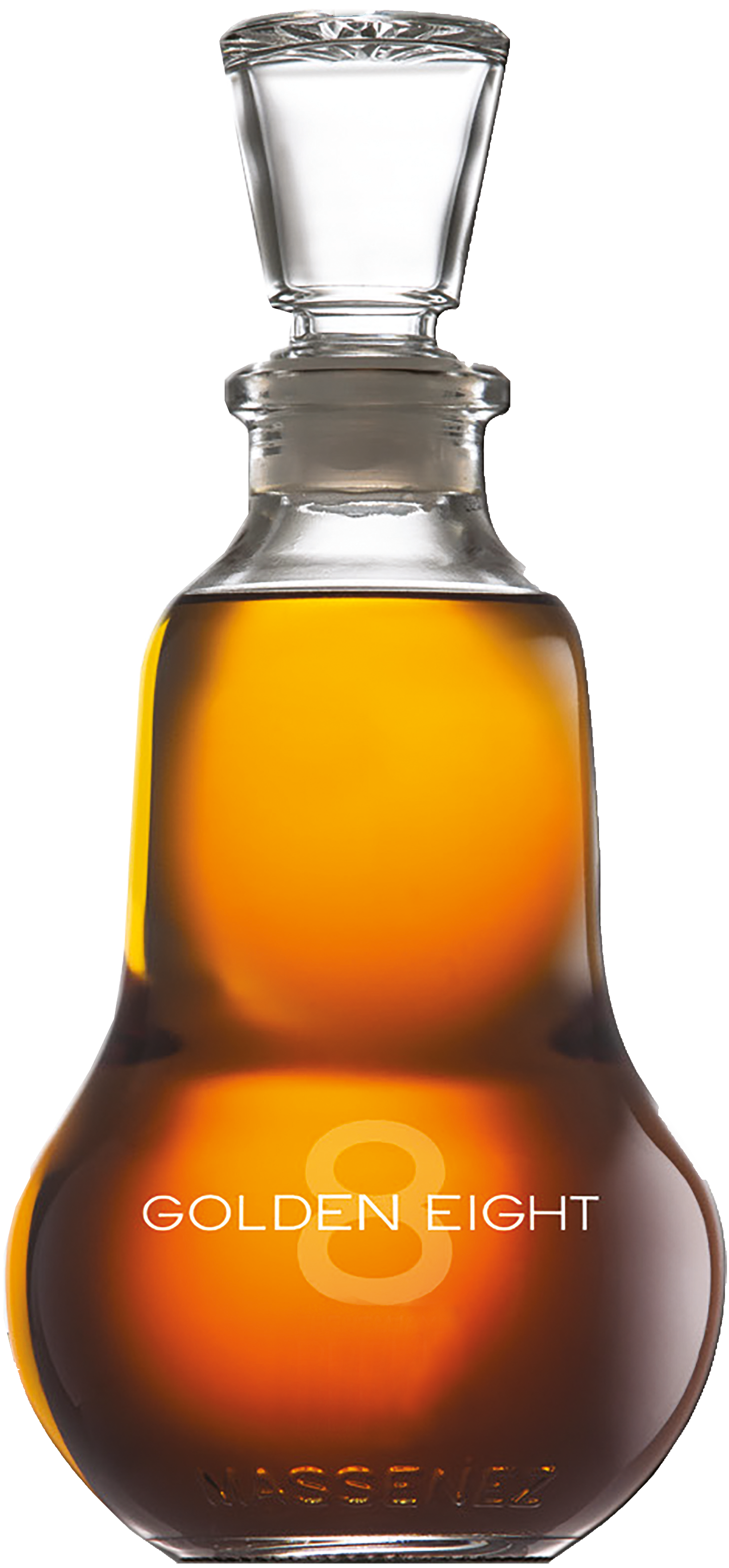 Der Golden Eight® Likör besteht aus einer Mischung außergewöhnlicher mindestens 8-jähriger Williamsbirnen Edelbrände (Eau-de-Vies).