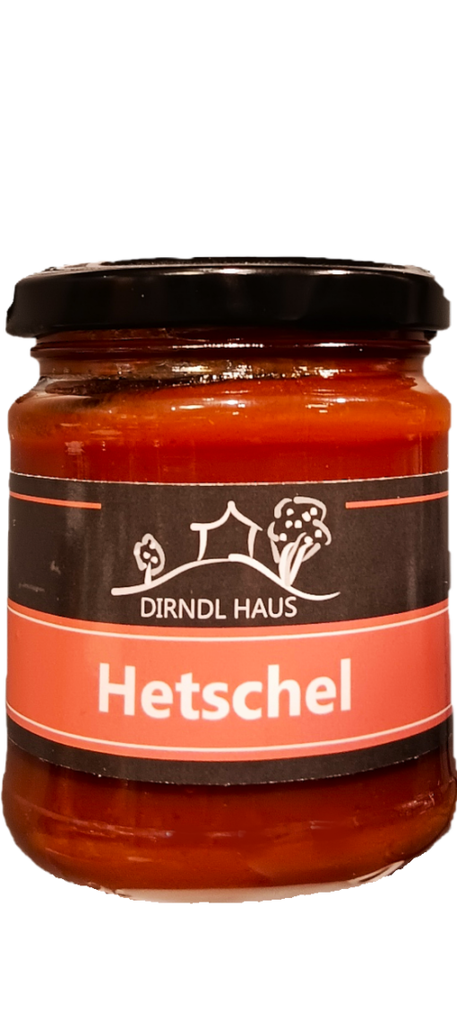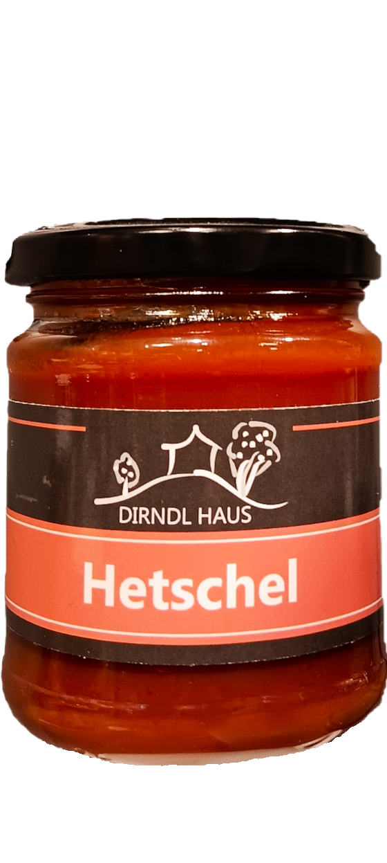 Dieser Aufstrich von der Hagebutte (Hetschel) ist eine cremige, streichfähige Marmelade mit einem sehr feinen süß-sauren Geschmack, einen hohen Vitamin C-Anteil und eine leuchtend orange Farbe. Für die Herstellung dieser erstklassigen Marmelade werden nur die besten und vollreifen Hetscheln verwendet. Zur Verarbeitung gelangen ausschließlich Wildfrüchte, welche von Hand geerntet und in Handarbeit verarbeitet werden.