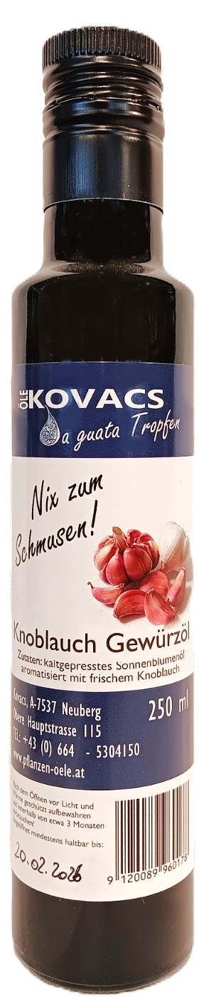 Kaltgepresstes Sonnenblumenöl, frischer Knoblauch