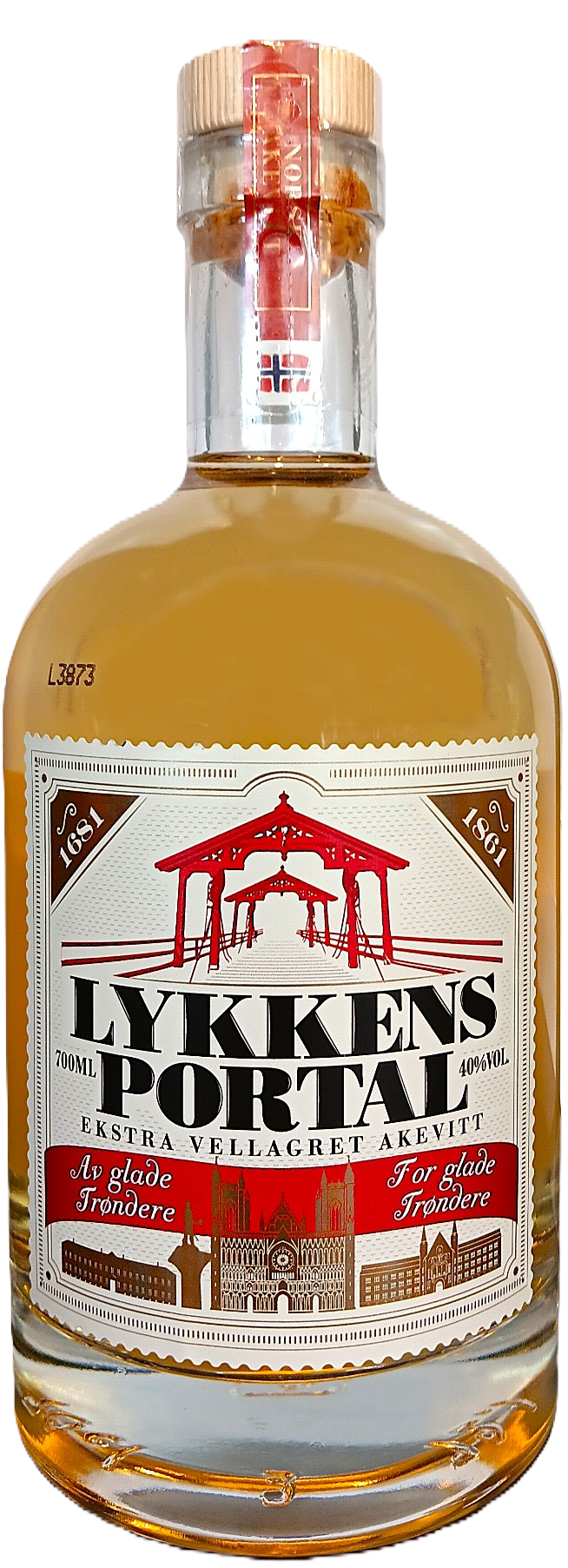 Dieser Aquavit ist einem Portal auf einer alten Holzbrücke gewidmet, die 1681 in der norwegischen Stadt Trondheim errichtet wurde. Das Portal ist wunderschön verziert, wirkt etwas „alt-romantisch” und es gibt eine alte Legende, die besagt, dass eine ewige, glückliche Ehe folgt, wenn ein Heiratsantrag unter dem Portal mit „Ja” beantwortet wird.