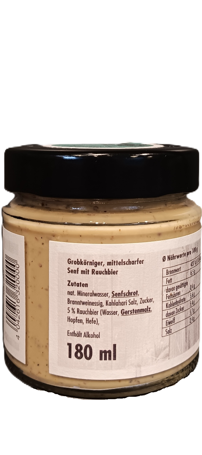 Dieser Senf wird mit echtem Zwönitzer Rauchbier aus Sachsen verfeinert. Der grobkörnige, mittelscharfe Senf aus dem Erzgebirge passt ideal zu allen Fleisch- und Wurstgerichten. Der aromatische Senf eignet sich hervorragend zum Würzen und Verfeinern von Vinaigretten und kalten Platten. Er peppt jede BBQ-Sauce auf und darf bei keiner Grillparty fehlen.