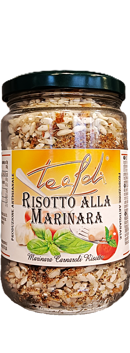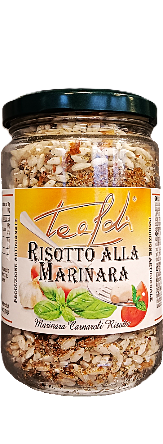 Carnarolireis, Tomate, Zwiebel, Salz, Lauch, Olivenöl, Maltodextrin, Brüheextrakt, Hefeextrakt, Oregano, Petersilie, Knoblauch, Basilikum.