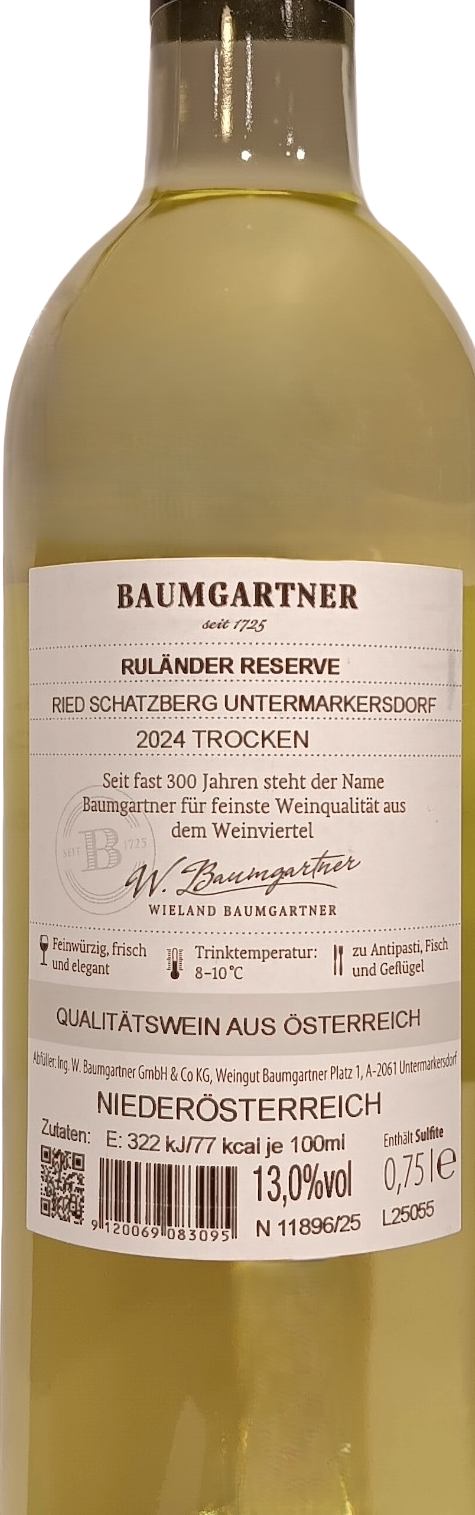 Ruländer ist ein anderer Name für die Rebsorte Grauburgunder, die viele auch als den italienischen Pinot Grigio kennen. Dieser Ruländer Reserve zeichnet sich durch seinen lebendigen Charakter und seinen ausgeprägt sortentypischen Aromen aus. Ein trinkfreudiger Wein mit feinen, dezenten Fruchtnoten!