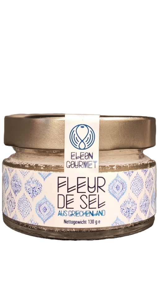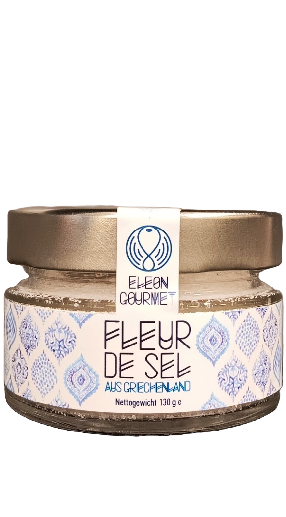 Fleur de Sel, auch Salzblume oder Salzflocken genannt, wird mühsam aus den Salinen von Mesolongi in Griechenland von Hand abgeschöpft und in der Sonne getrocknet. Ein unraffiniertes Naturprodukt ohne Zusätze, das wertvolle Mineralstoffe enthält. Die zarte Salzblumen sind leicht knusprig und verleihen den Speisen einen besonderen Geschmack. Hervorragend geeignet um den letzten feinen „Finish“ eines Gerichts zu verleihen. Die Salzflocken sind Fingersalz und nicht für die Salzmühle geeignet. Dieses Produkt eignet sich auch gut als Mitbringsel oder Geschenk!