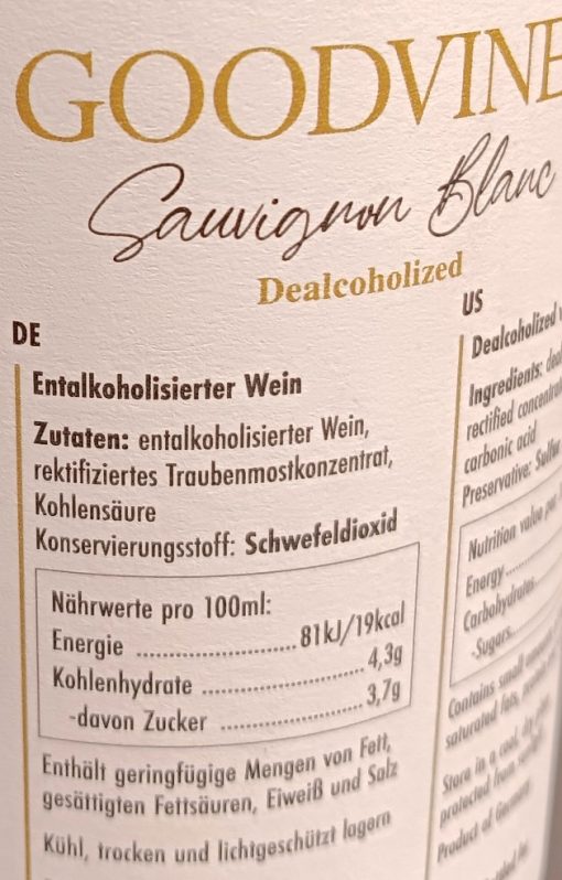 Dieser erlesener Weißwein von der Sorte Sauvignon Blanc wird unter Vakuum schonend entalkoholisiert und durch Rückgewinnung von den Aromastoffen und einen kleinen Zusatz von rektifiziertem Traubenmost ist der Wein trotzdem voll aromatisch. Er passt als ein feiner Genuss ohne Alkohol, entweder als Speisebegleiter oder auf Eis oder in Drinks - oder nur so Solo, ohne Ablenkung.