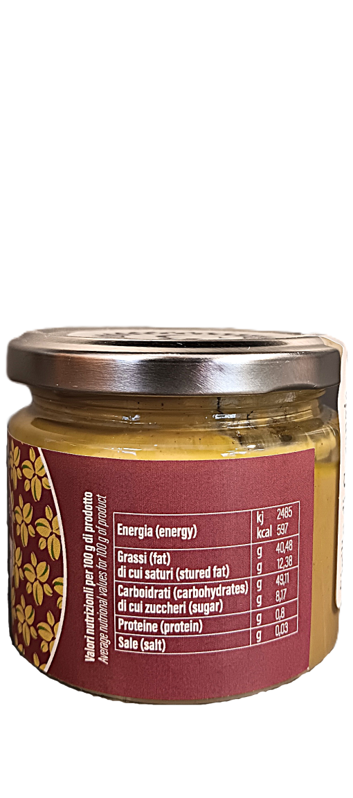 Zucker 10%, pflanzliches Fett, Vollmilchpulver, Magermilchpulver, Sonnenblumenlecithin-Emulsion, natürliches Vanillearoma, Pistazie 30%