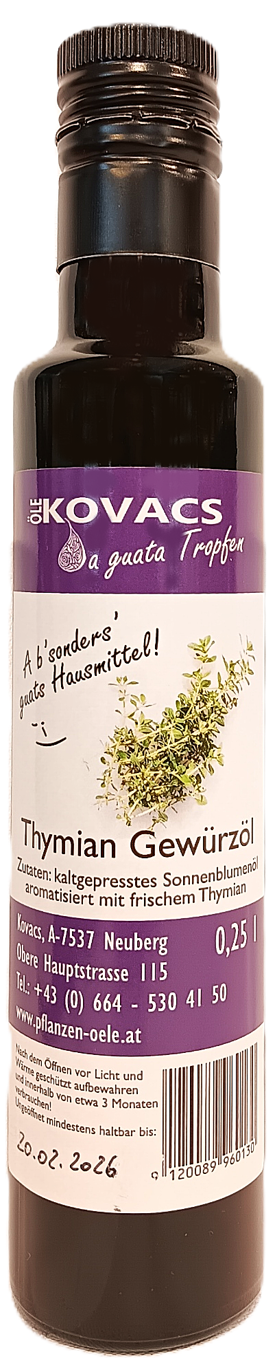 Kaltgepresstes Sonnenblumenöl, Thymian