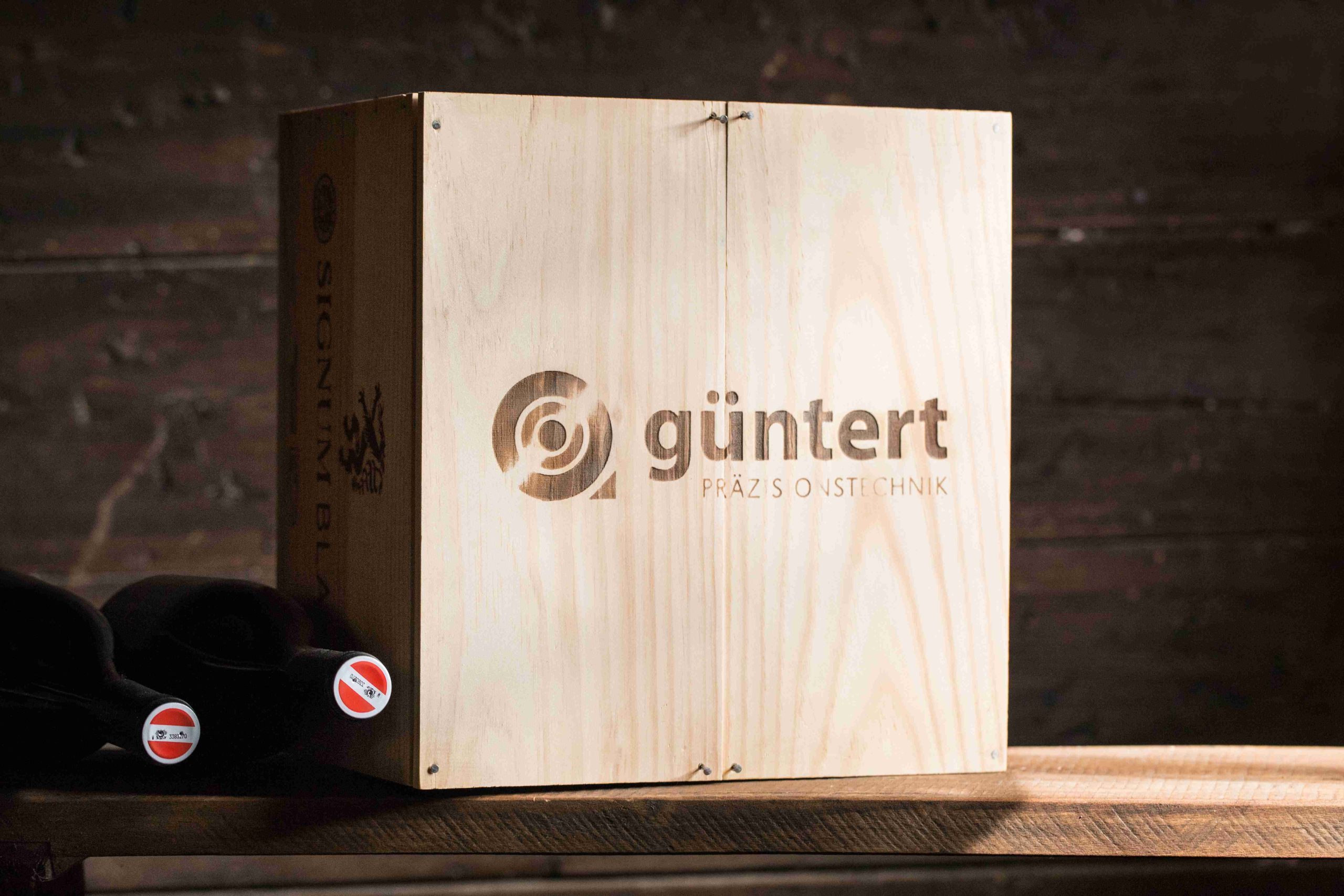 Die SIGNUM BLANC Holzkiste kann mit einem von Ihnen verfassten Text graviert werden, zum Beispiel als Geschenk an Familie, Freunde, Kollegen, Angestellte oder Geschäftspartner. Es gibt verschiedene mögliche Designs und Schrifttypen und -Größen, siehe Beispiele in den letzten vier Bildern in der Bildergalerie.